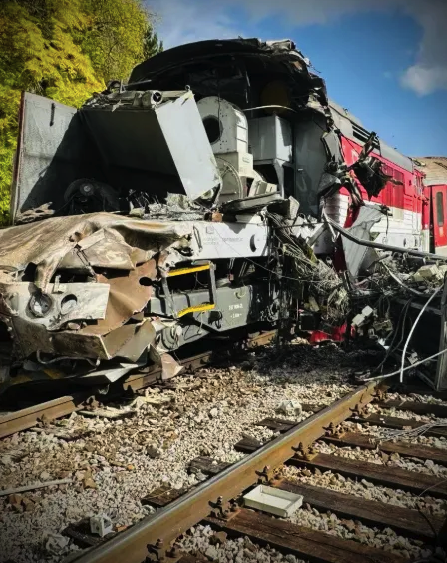 Аварія двох потягів. Фото: facebook.com/policiaslovakiaЯк зазначив глава МВС Словаччини Матуш Шутай Ешток, попередньою причиною аварії став людський фактор - один із машиністів, імовірно, не дотримався правил і не надав переваги іншому поїзду.