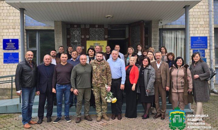 У місті Вижниця військовослужбовця зустріли представники місцевої влади, керівники правоохоронних органів, установ та організацій, аби подякувати йому за незламність, мужність та вірність Україні.