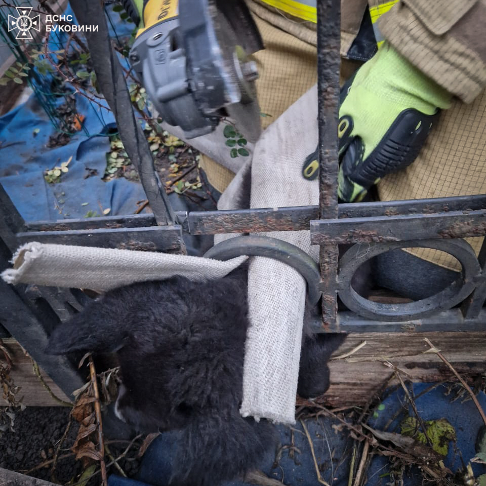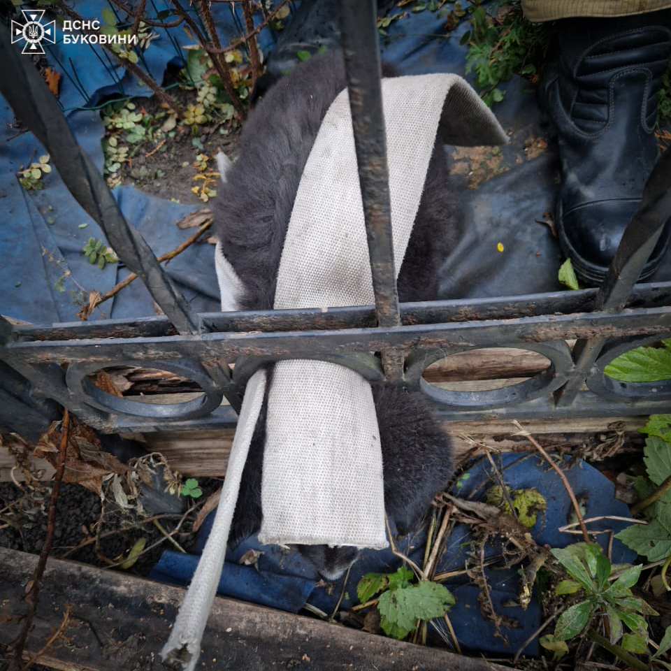 У Чернівцях рятувальники допомогли маленькому цуценяті, яке застрягло між металевими прутами огорожі.