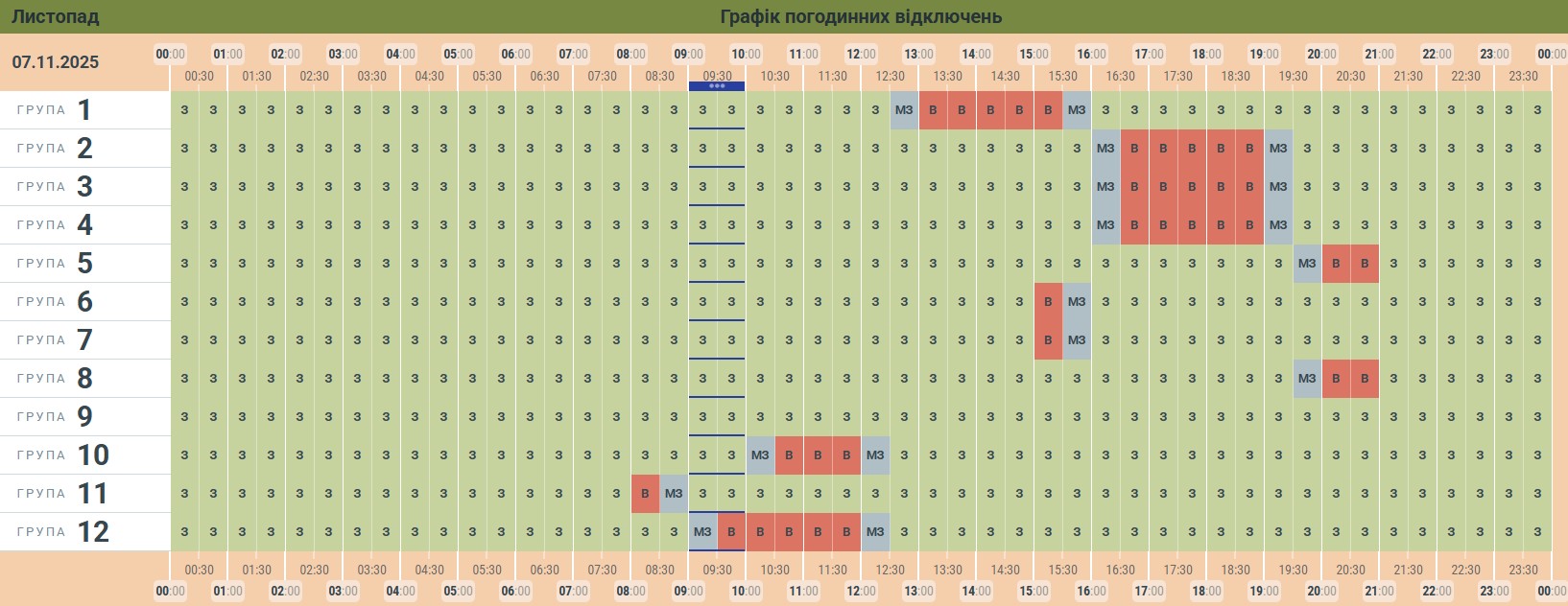 «Чернівціобленерго» оновило графік погодинних відключень електроенергії у Чернівецькій області. Зі світлом до кінця доби будуть 9 та 11 групи.