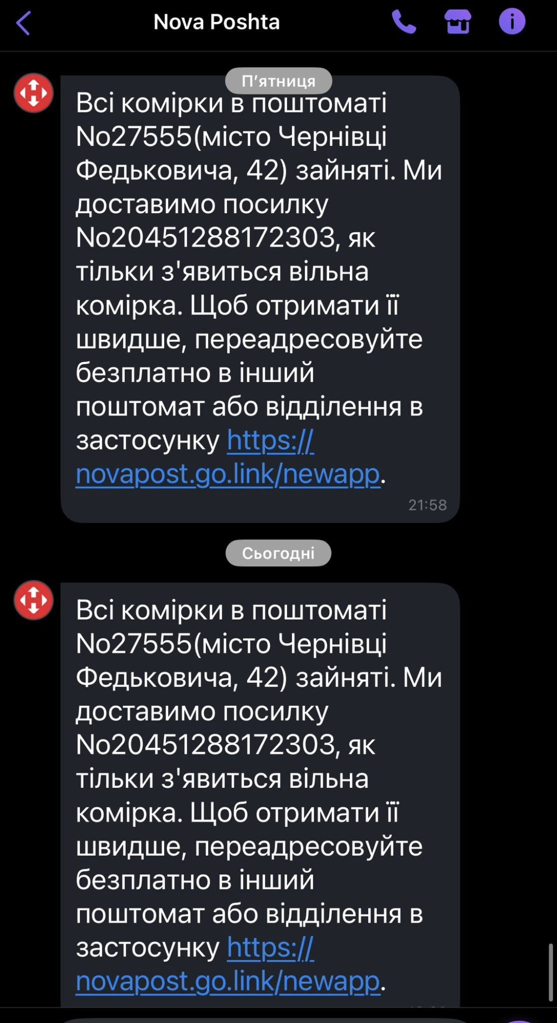 Але поштарі не знаходять в поштоматі вільних скриньок і повертають посилку на склад. Вже третій день.
