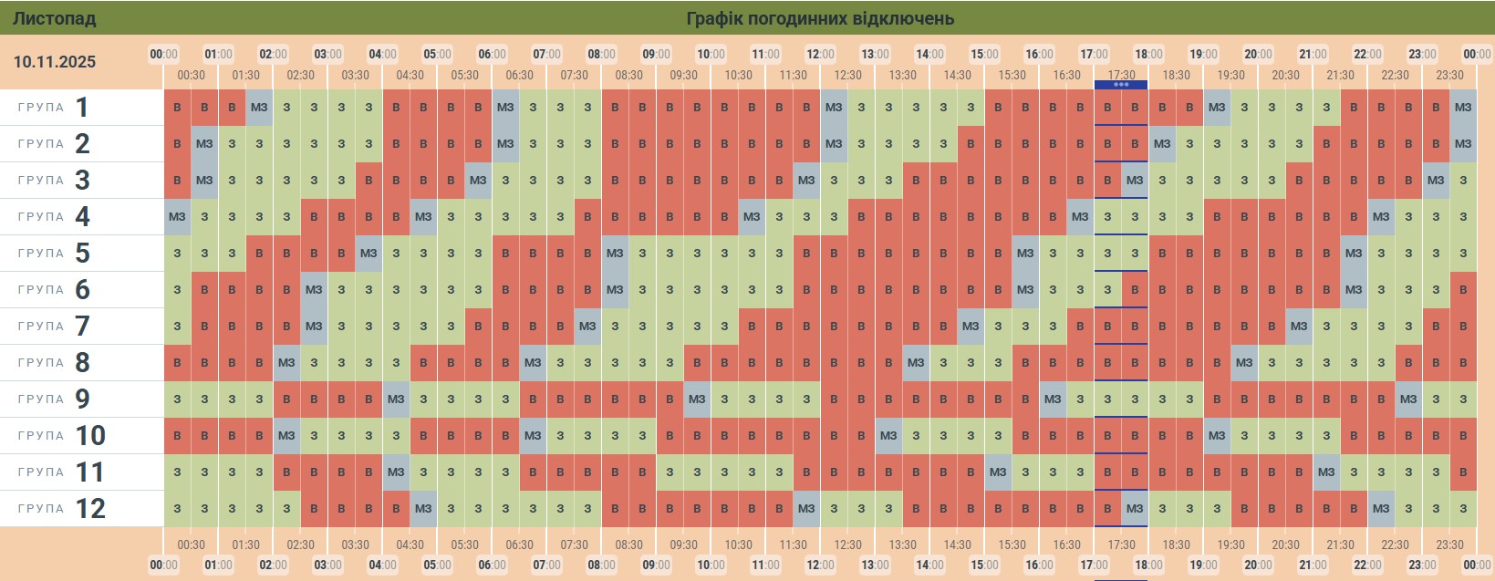 «Чернівціобленерго» оновило графік погодинних відключень електроенергії у Чернівецькій області на вечір 10 листопада. Згідно оновленого графіку більшість буковинців сьогодні проведуть вечір без світла. Відключення триватимуть від 3,5 до 4 годин.