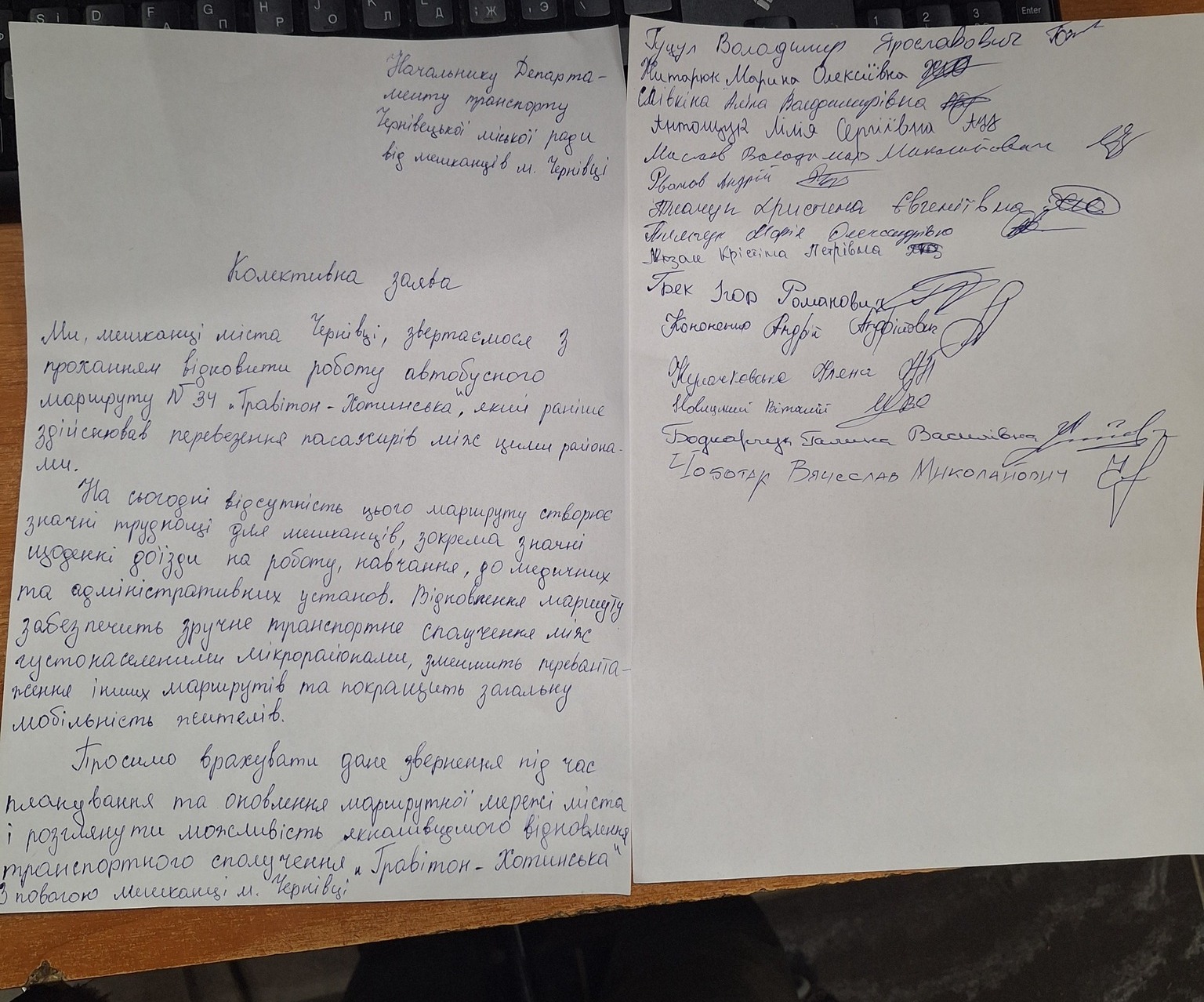 Тепер на Гравітоні розпочали збір підписів за відновлення маршруту до вулиці Хотинської і закликають усіх небайдужих мешканців прийти у суботу, 15 листопада, та підписати звернення до міської влади.