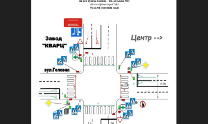Перехрестя Головної та Південно-Кільцевої відоме складністю організації руху. Для покращення ситуації, запускаємо пілотний режим роботи світлофора з оновленою організацією руху.