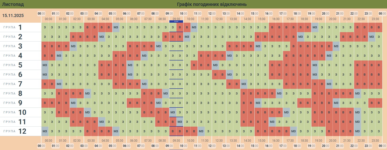 «Чернівціобленерго» опублікувало графік погодинних відключень світла у Чернівецькій області на суботу, 15 листопада. В середньому електроенергії в оселях буковинців сьогодні не буде від 8 до 10 годин.