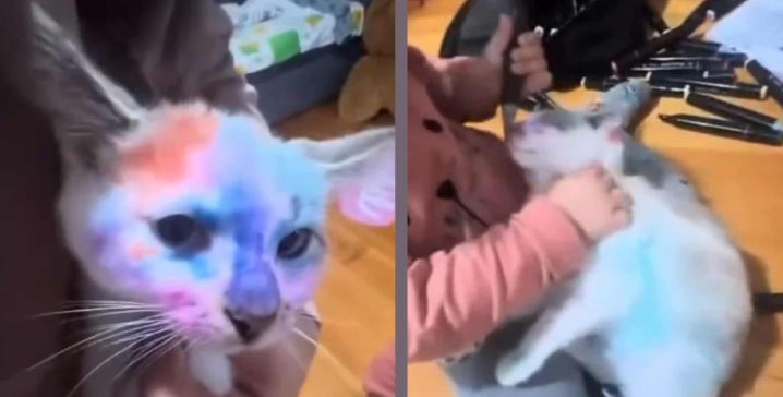 Суд притягнув до відповідальності батька дитини, яка розмалювала кошеня фломастерами. Крім того, тварину мають конфіскувати з родини.