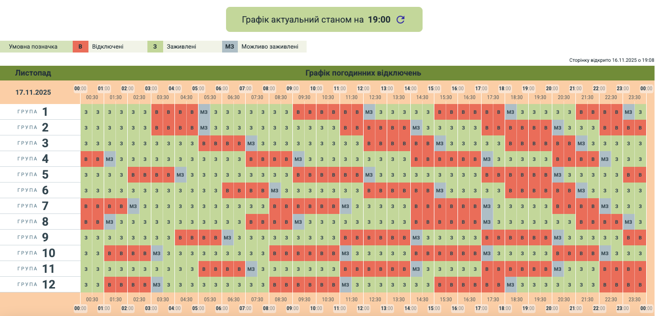 Графік відключень світла у Чернівцях та області на понеділок, 17 листопада