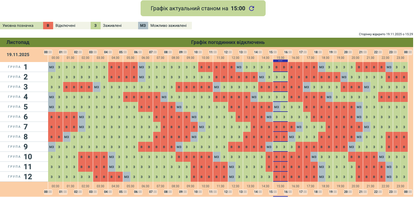 Обленерго оновило графік відключень в Чернівцях та області на сьогодні