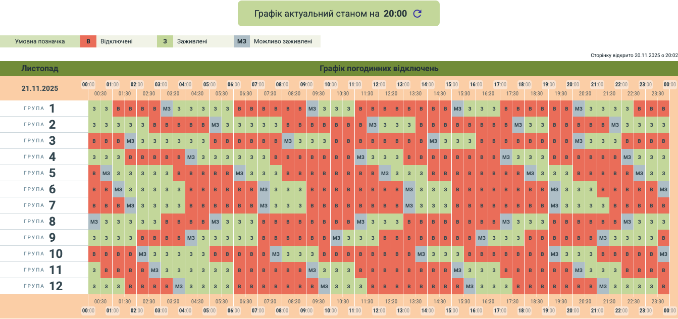 Орієнтовний графік заживлення 21.11.2025