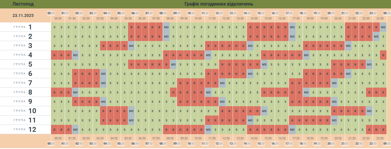 Чернівціобленерго опублікувало новий графік вимкнень на Буковині на неділю, 23 листопада.