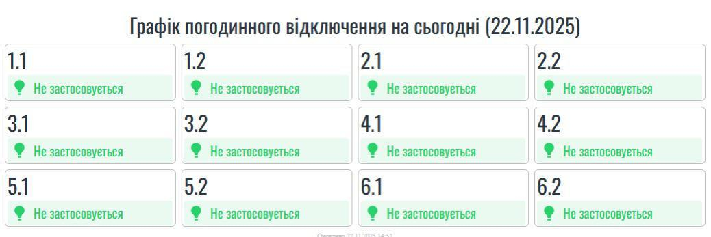 Обленерго оновило графік відключень в Чернівцях та області на сьогодні