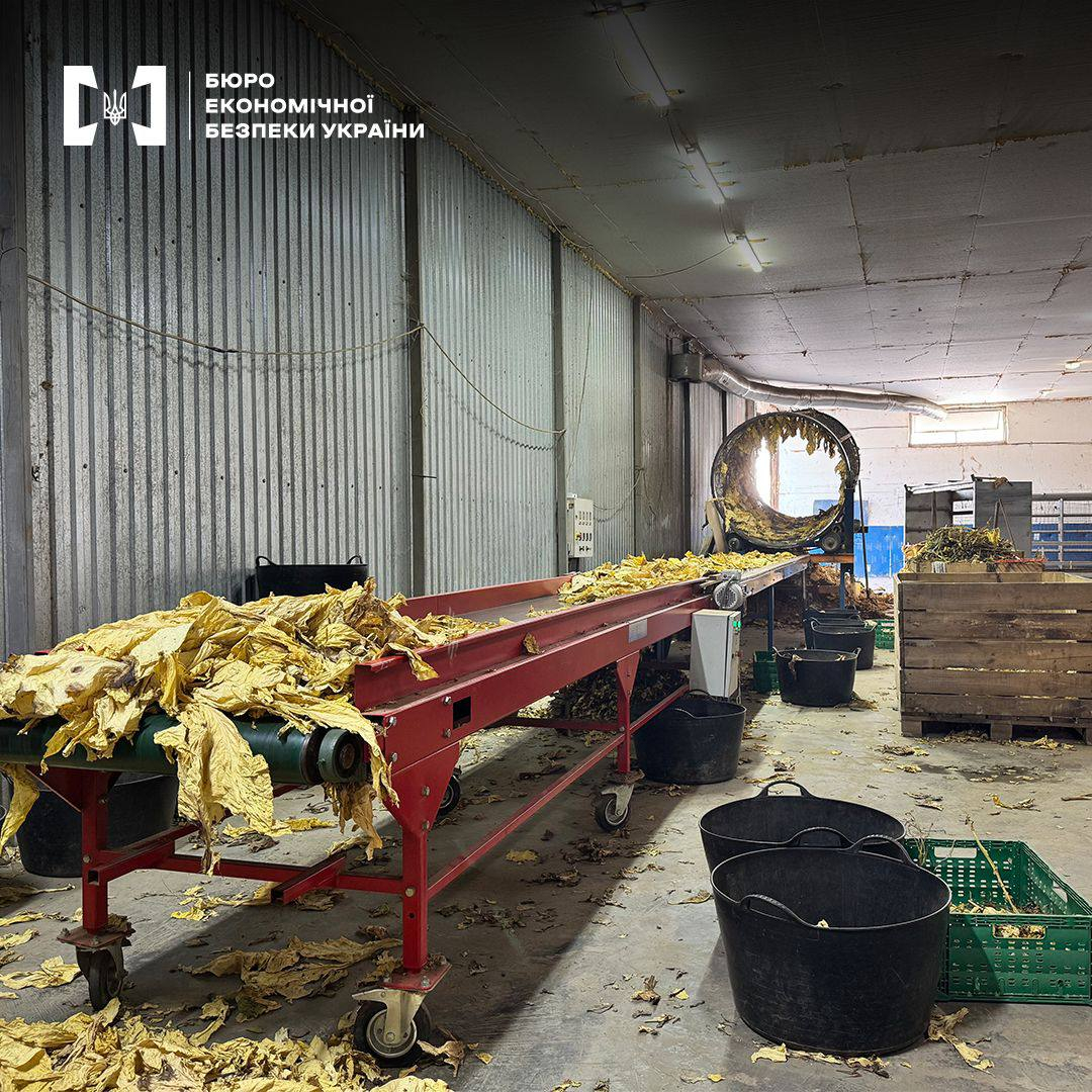 Знайдено 25 тонн тютюнової сировини, контейнери для сушіння, обладнання, а також гроші, телефони й чорнові записи