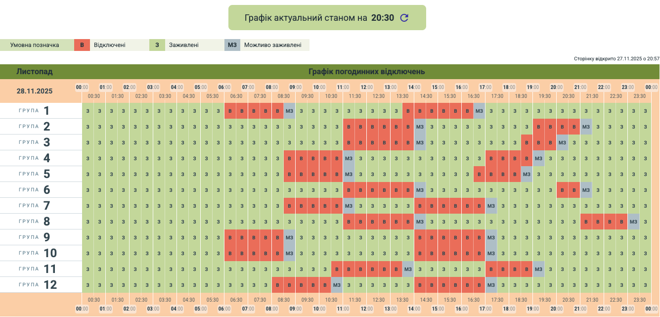 В обленерго оприлюднили графік відключень світла у Чернівцях та області на 28 листопада.