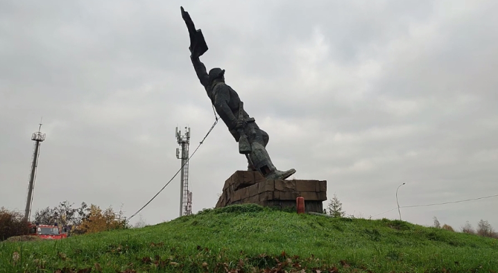 У селищі Путила, що в Чернівецькій області, впав пам'ятник радянському солдатові.