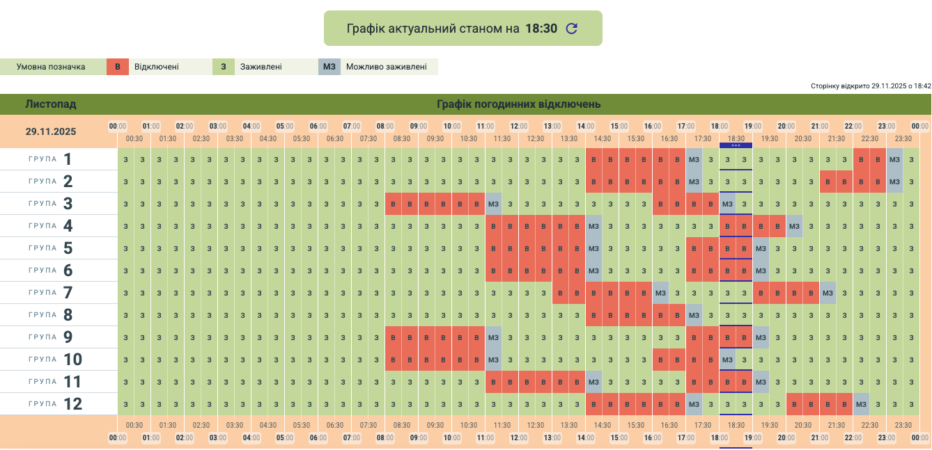 "Чернівціобленерго" оновило графік відкючень на сьогодні.