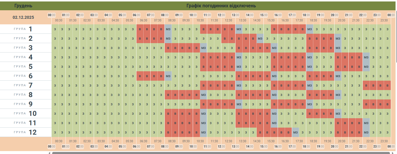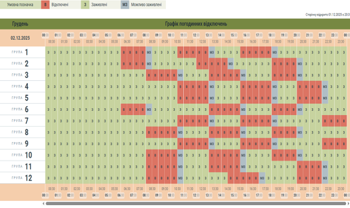 Новий графік вимкнень у Чернівцях та області на 2 грудня опублікувало "Чернівціобленерго".