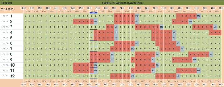 Сьогодні, 5 грудня, у Чернівцях та області продовжать діяти стабілізаційні графіки погодинних вимкнень електроенергії. Частина буковинців буде двічі за добу без світла, а в частині груп споживачів електрику вимикатимуть тричі. Загалом світла не буде від 5 до 9 годин, в залежності від групи.