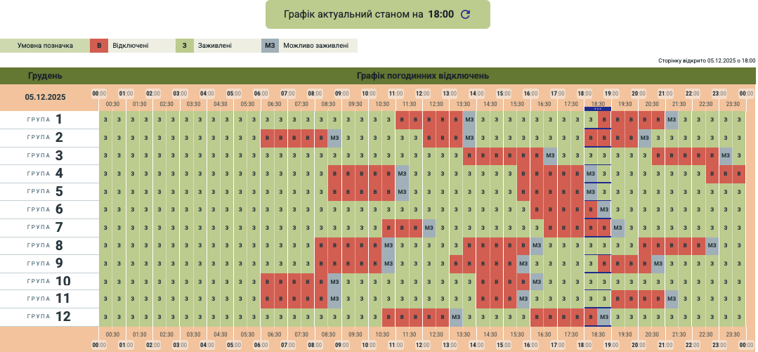 У різних групах споживачів світла не буде 2 або 3 три години до кінця доби