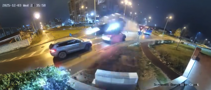 Румунські медіа поширюють відео ДТП з камери відеоспостереження в місті Орадя. Водій Mercedes втратив керування та "перелетів" через дві автівки на кільцевій розв'язці.