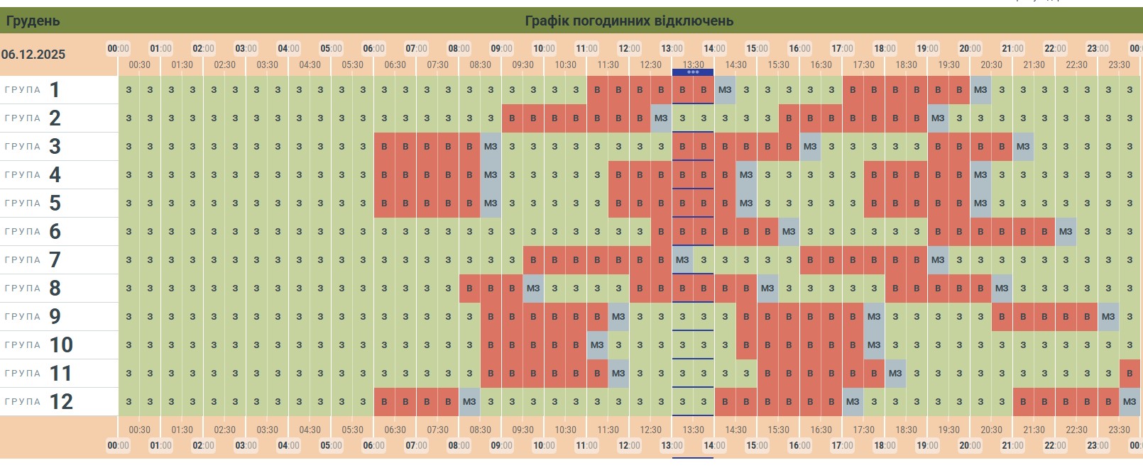 «Чернівціобленерго» знову оновило графіки погодинних відключень світла на суботу 6 грудня. Вимкнення будуть менш тривалими. Але враховуючи нестабільну ситуацію в енергомережі країни до вечора можуть бути зміни.