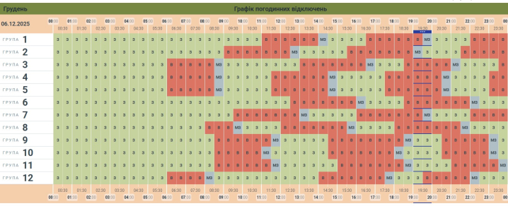 «Чернівціобленерго» вкотре за день оновило графік знеструмлень на 6 грудня. У більшості груп додали додаткове відключення і світла у вечір суботи буде ще менше.