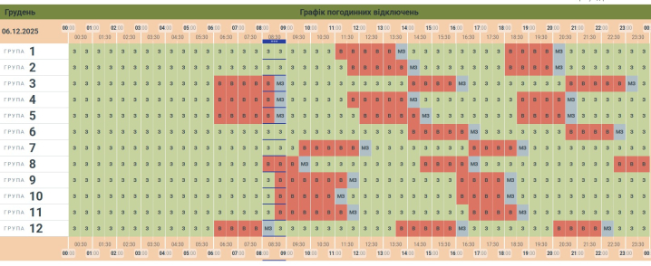 «Чернівціобленерго» під ранок оновило графік знеструмлень на суботу, 6 грудня. В деяких групах додали ще одне відключення на 2,5 години, а в деяких час відключень став довшим.