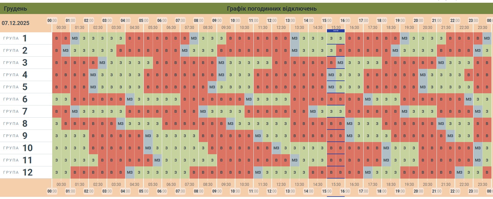 «Чернівціобленерго» відкоригувало графік знеструмлень на вечір 7 грудня. В усіх групах змінилися години вечірніх відключень.