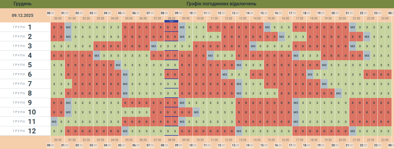 Світла майже не буде. Графік знеструмлень на Буковині у понеділок 8 грудня