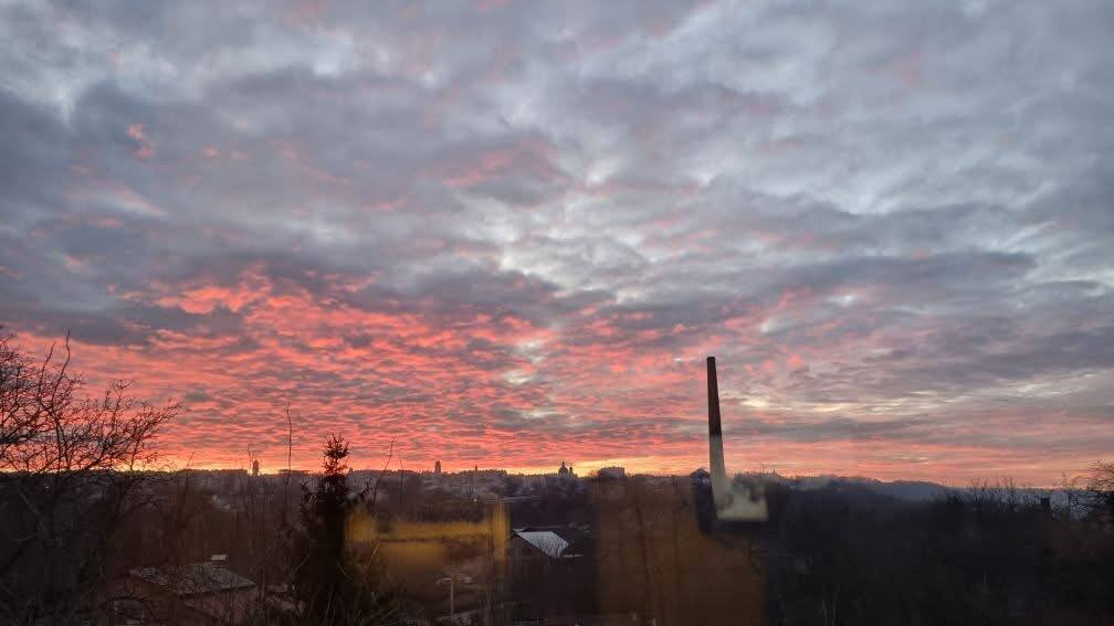 У середу, 10 грудня, у Чернівцях зазнімкували неймовірний яскравий захід сонця.