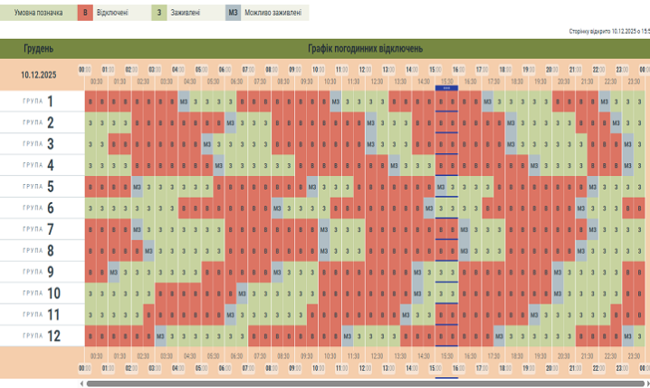 Чернівціобленерго опублікувало оновлений графік вимкнень світла на Буковині на 10 грудня.