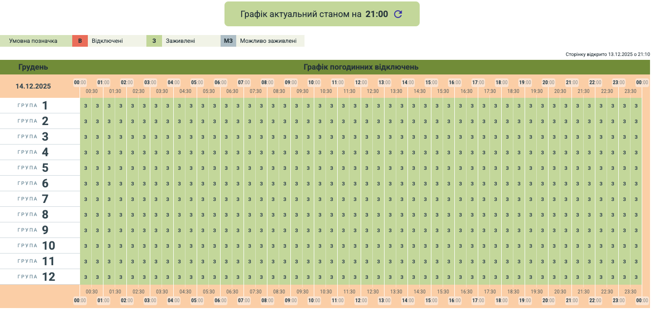 "Електропостачання без обмежень для всіх груп споживачів", - йдеться у повідомленні.