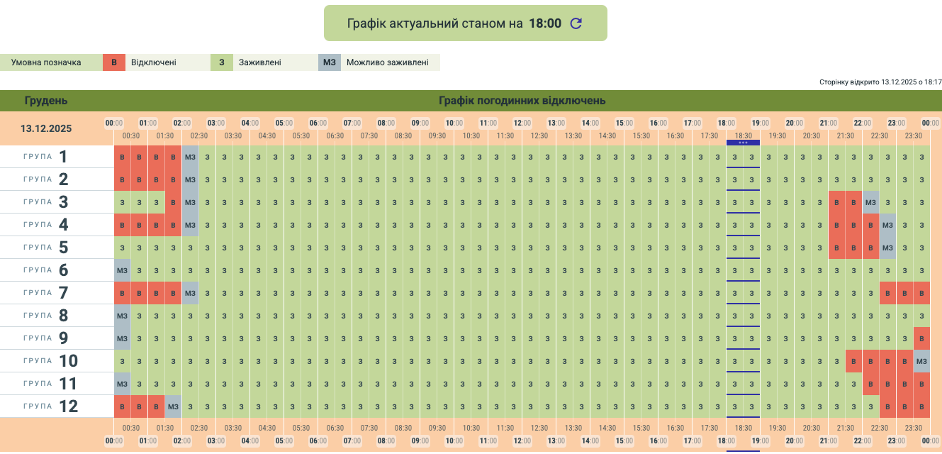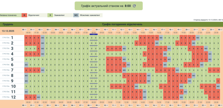 Обленерго опублікувало оновлений графік відключень світла в Чернівецькій області на 13 грудня.