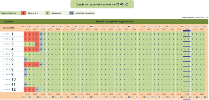 Оновлений графік відключень світла в Чернівецькій області на 13 грудня