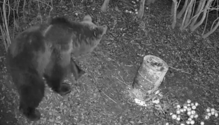 У Селятинському лісництві на Буковині у відеопастку потрапив ведмідь, який прийшов на підгодівельний майданчик.