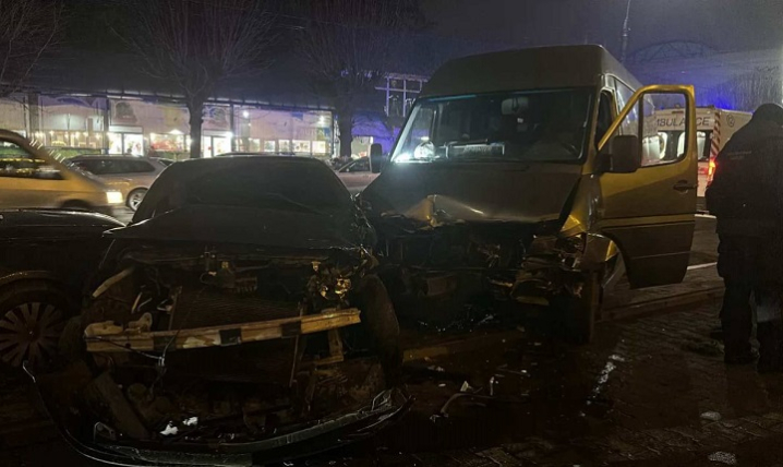 У Чернівцях біля "Формаркета" п'яний водій буса врізався у авто. Машини потрощені. Також, ймовірно, протаранене ще одне авто, яке було припарковано.