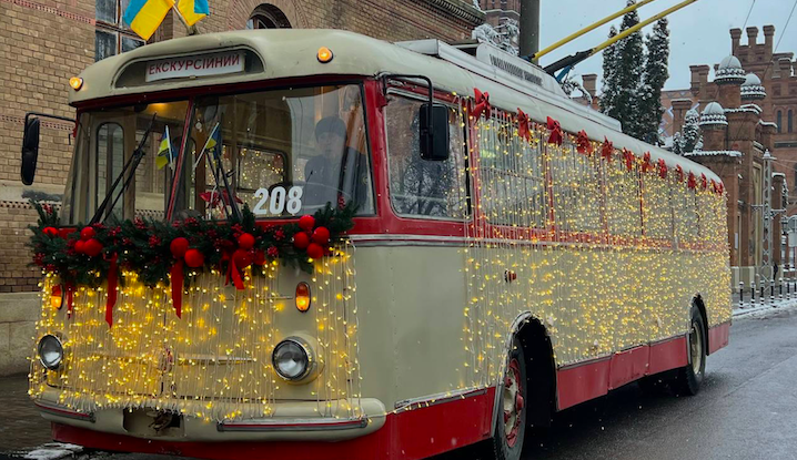 Відсьогодні 24 грудня до 1 січня, різдвяний тролейбус №208 курсуватиме у вечірній час по маршруту №1: "Національний університет - вул. Ясська".