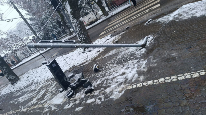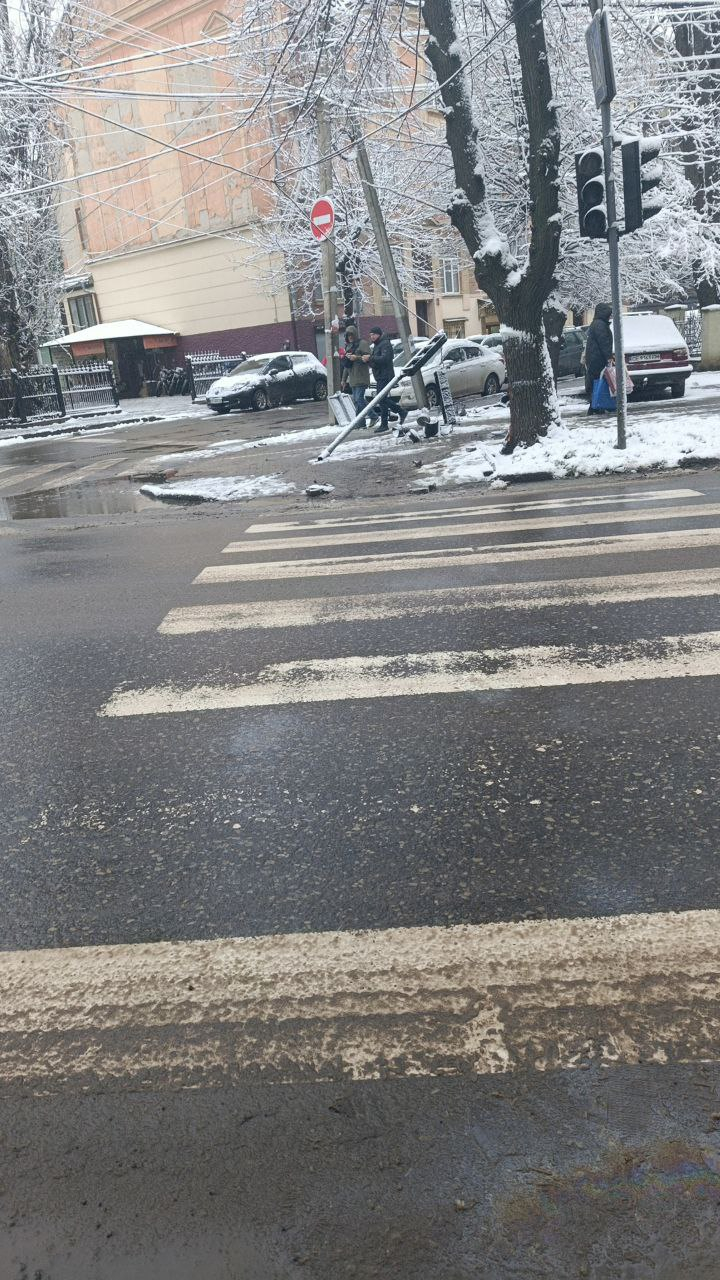 У Чернівцях на вулиці Садовій знесли світлофорний стовп.