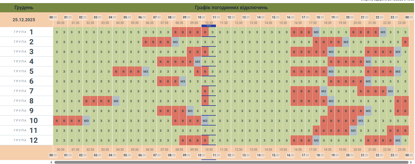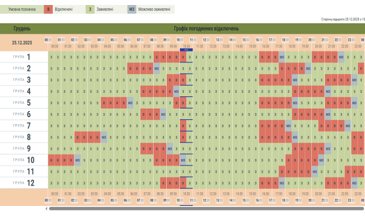 Опублікували оновлений графік у Чернівцях та області на 25 грудня.