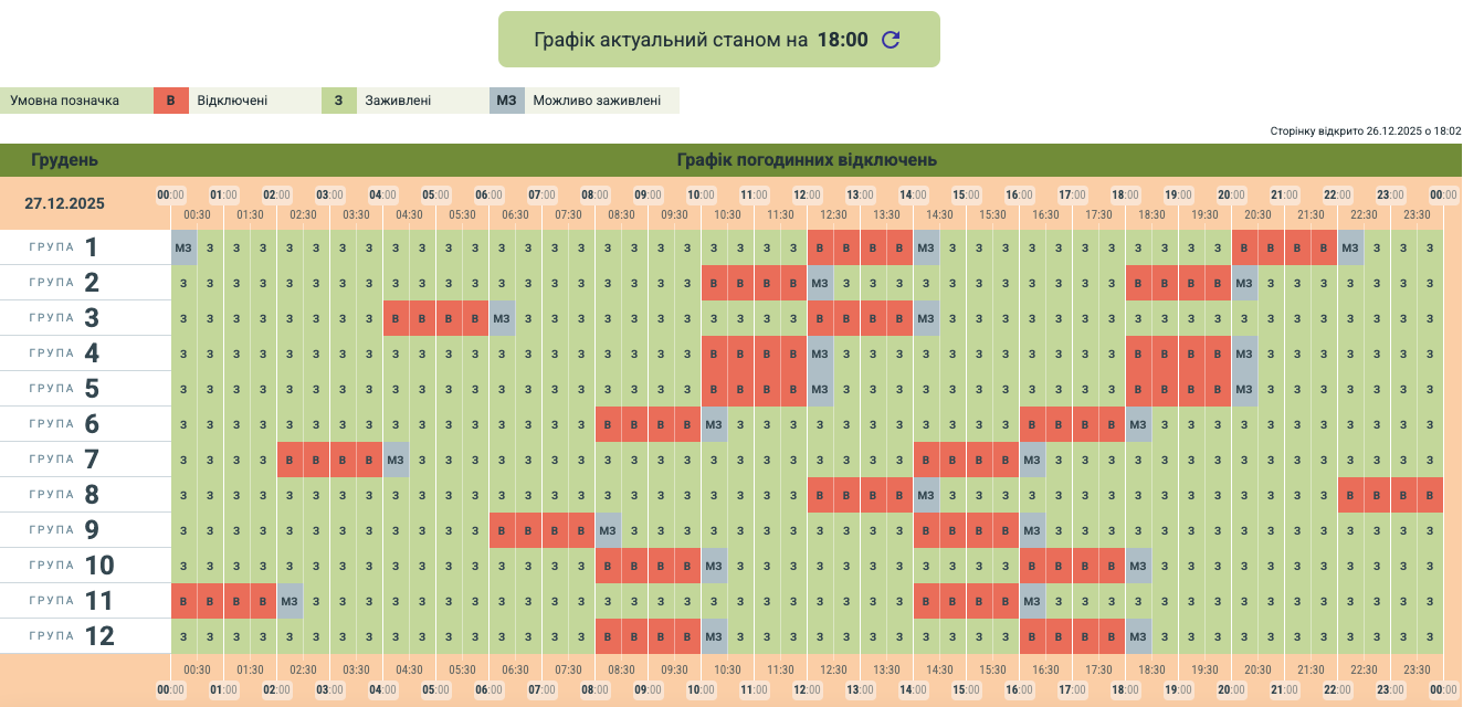 В обленерго опублікували графік відключень в Чернівецькій області на 27 грудня.