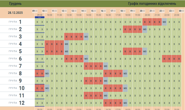 Під ранок оновили графік вимкнення світла на Буковині у неділю на 28 грудня.