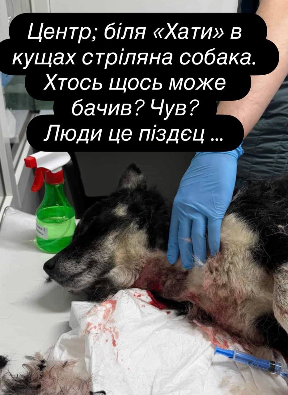 "Центр. Біля "Хати" в кущах застрелена собака. Хтось щось бачив? Чув? Люди це п...ць", - йдеться у дописі.