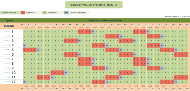 Обленерго опублікувало графік відключень світла у Чернівецькій області на 31 грудня.