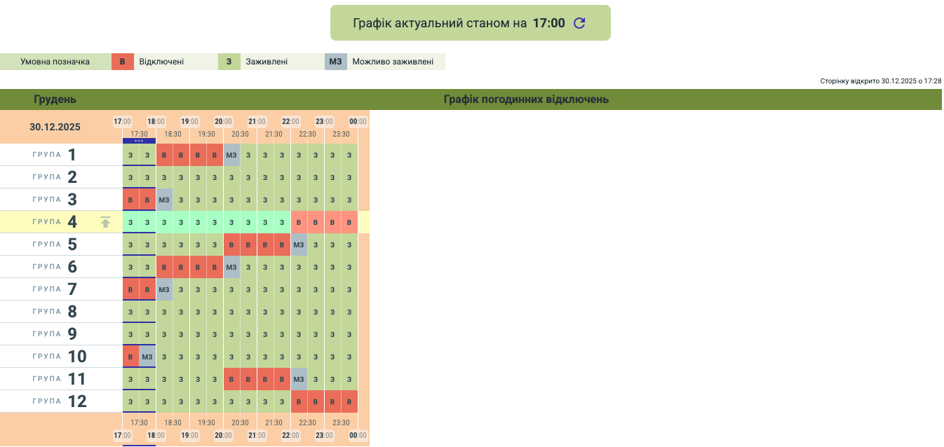 В обленерго оновились огоднішній графік відключень світла на Буковині.