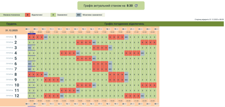 Оновлено графік відключень світла у Чернівецькій області на 31 грудня.