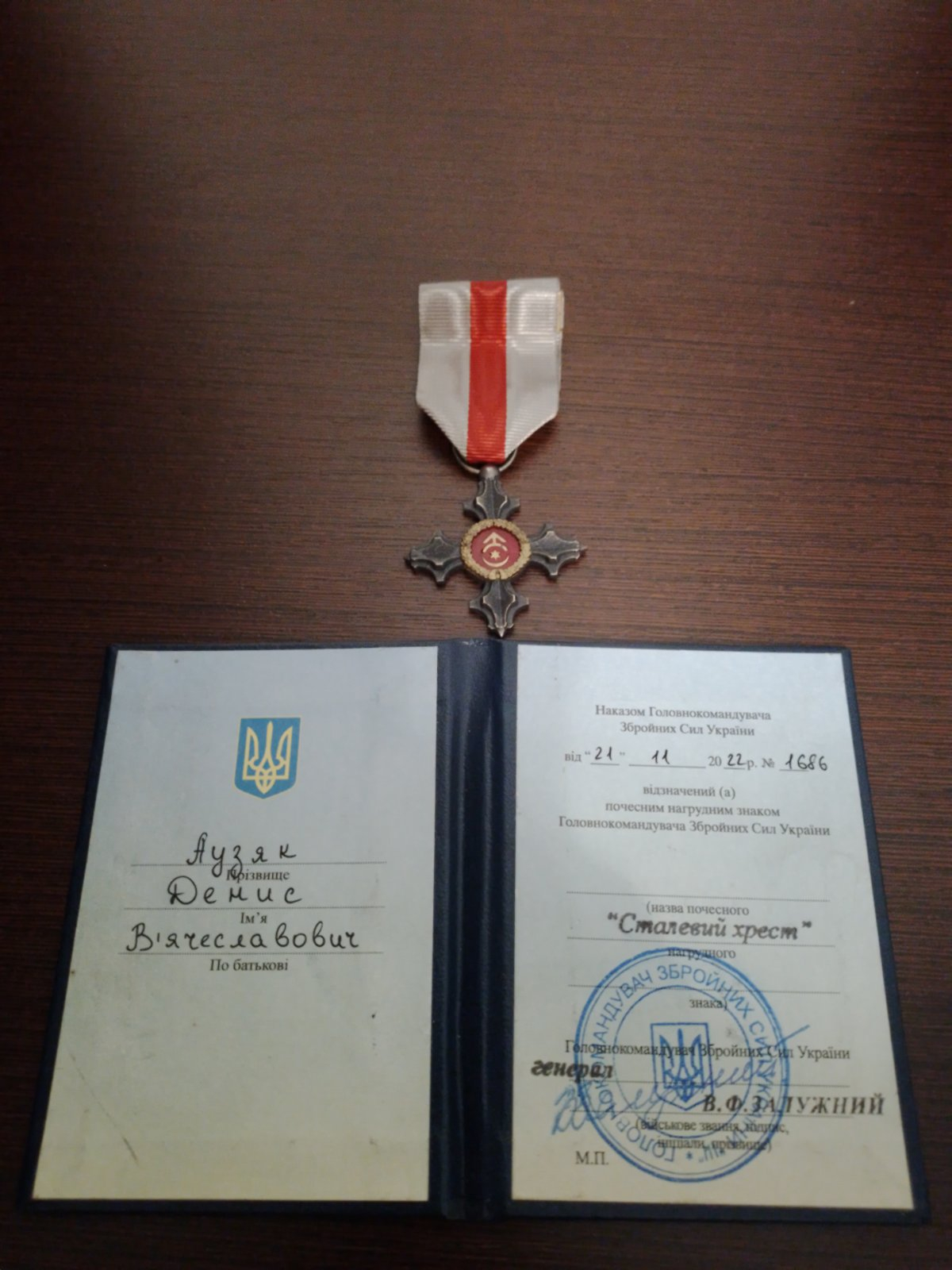 Окрім того, за героїзм і вагомі успіхи в бойових діях Захисник удостоєний почесних нагрудних знаків від Головнокомандувача Збройних Сил України – "Золотий хрест" та "Сталевий хрест".