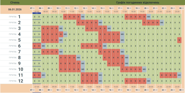 Світло вимикатимуть 2-3рази на добу, в залежності від групи споживачів.