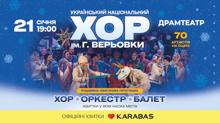 Національний хор Верьовки вже багато десятиліть є символом українського хорового мистецтва. У різдвяній програмі колектив постає як живий міст між поколіннями — зберігаючи автентичність народної традиції та водночас подаючи її у сучасному сценічному форматі, близькому й зрозумілому сьогоднішньому слухачеві.