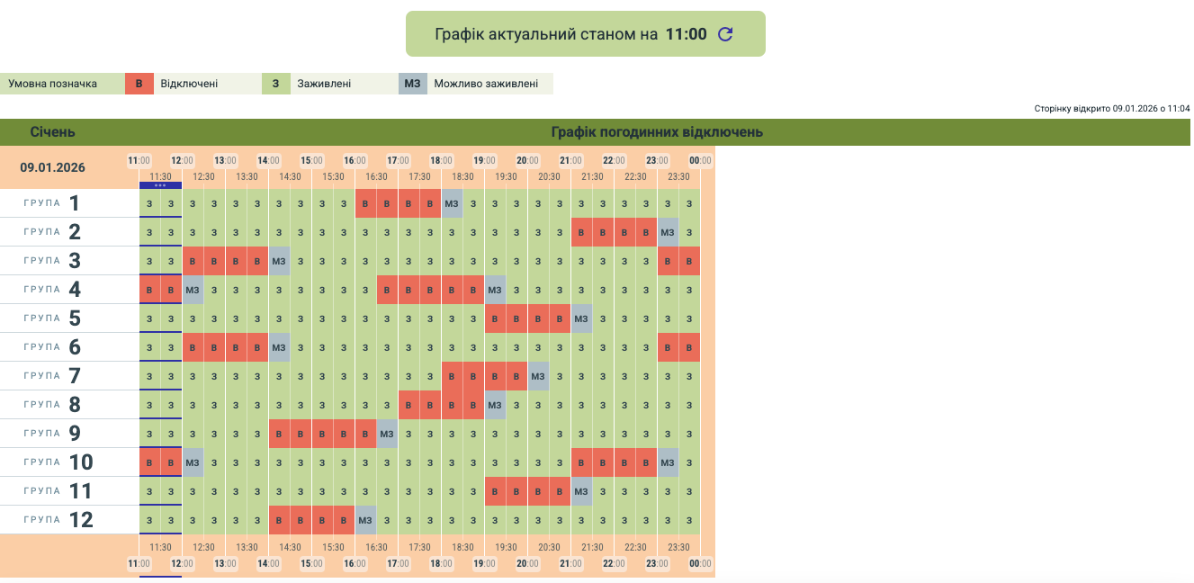 Обленерго опублікувало оновлений графік відключень світла в Чернівецькій області на 9 січня.