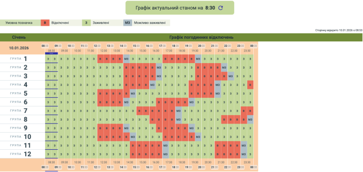 Обленерго опублікувало оновлений графік знеструмлень в Чернівецькій області на 10 січня.