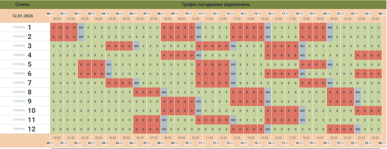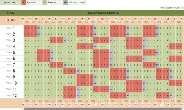 Оприлюднили новий графік відключення у Чернівцях та області на 12 січня.